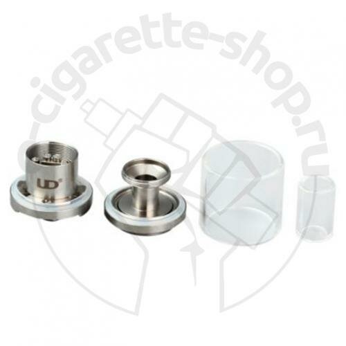 Устройство поставляется в сборе с фирменным стеклянным дрип-типом. Также в комплекте имеется переходник, с помощью которого можно установить любой 510-й дрип-тип.